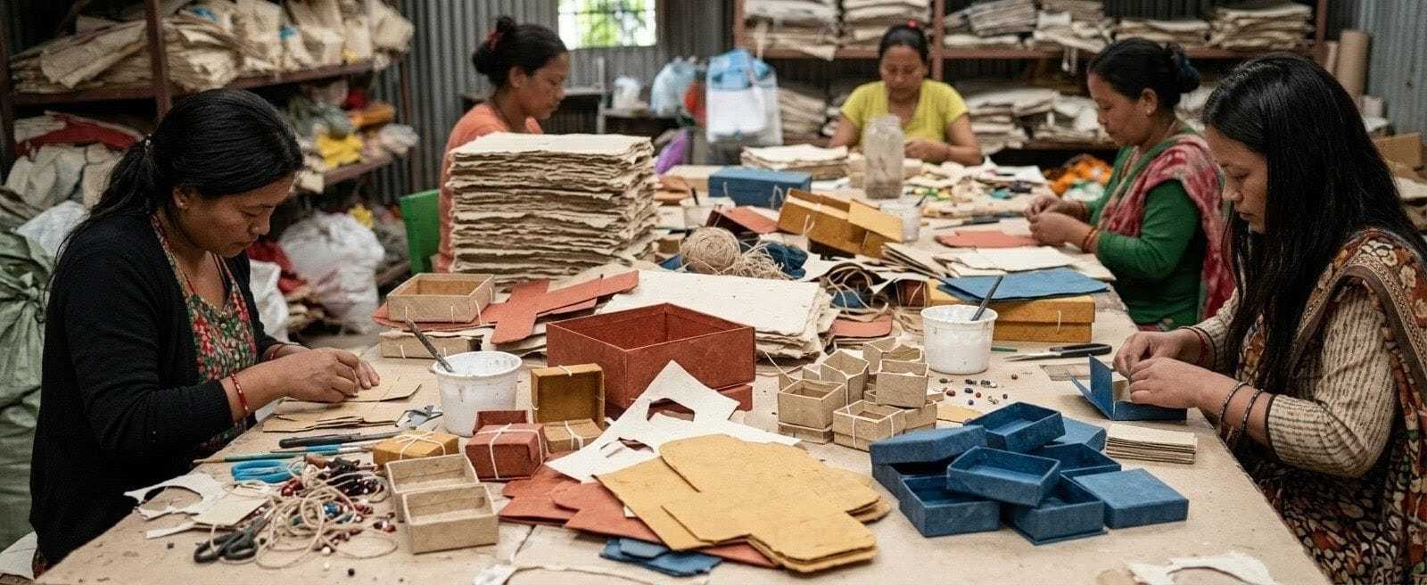 The lokta paper we use is made by women-led artisan groups in Nepal. Choosing this packaging is not just an environmental decision — it is an economic one. It supports women's employment, preserves a traditional craft, and keeps more value within the communities that make our jewellery possible.